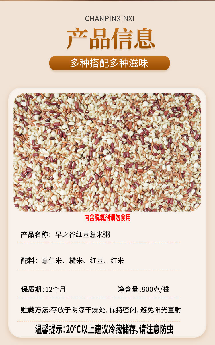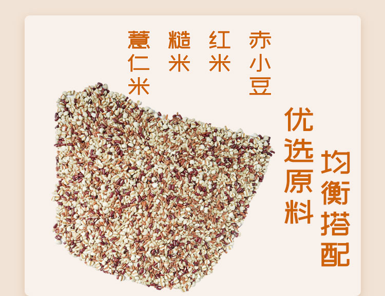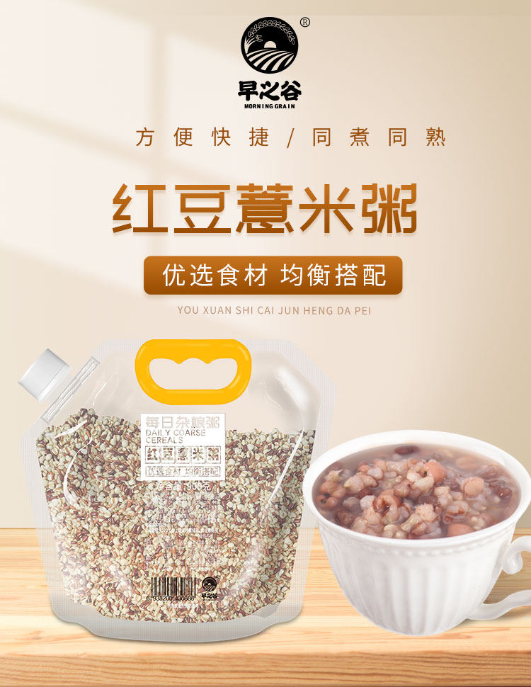 首页    自有品牌    杂粮粥米系列    每日杂粮粥-红豆薏米粥900g
